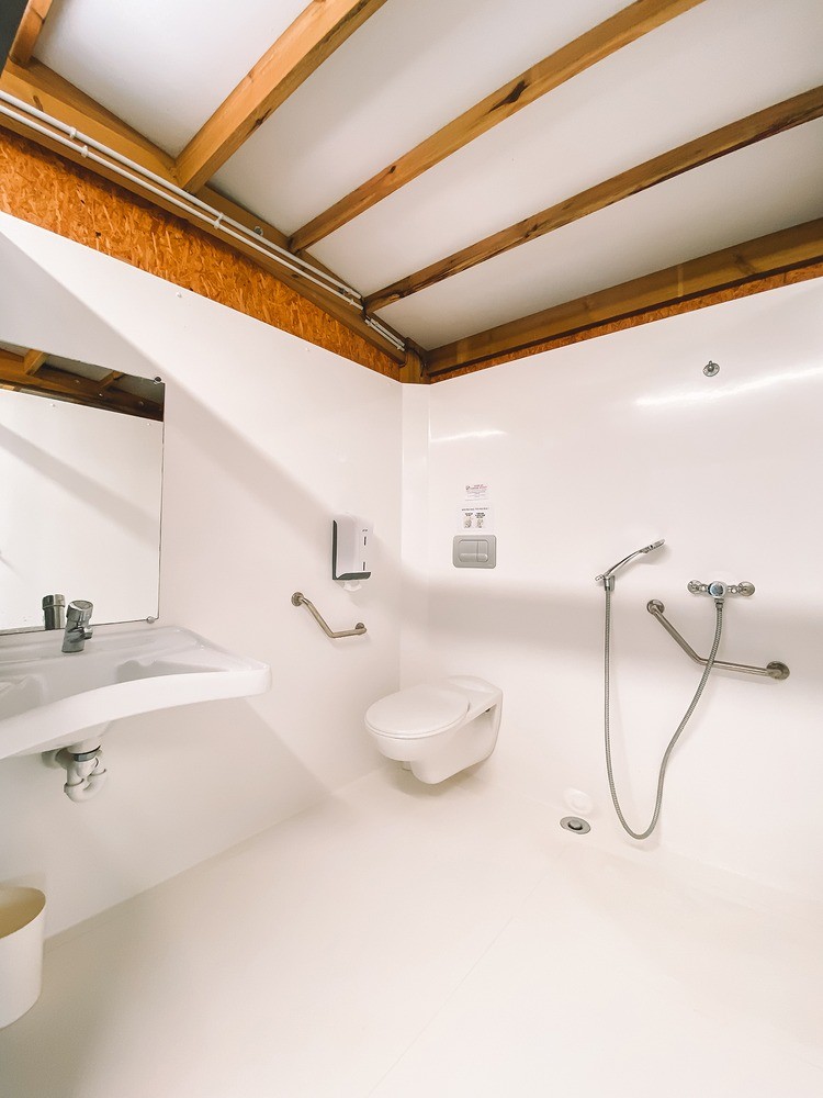 Accessibilité assurée. Douches et WC adaptés, prises pour sèche-cheveux et rasoirs. 🚿