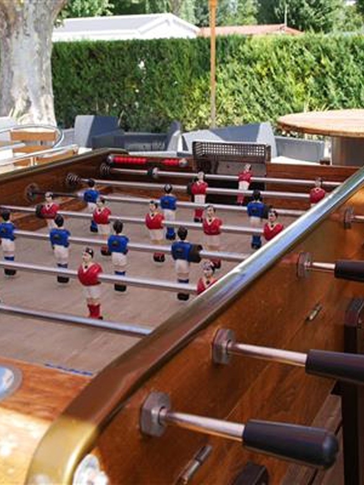 Activités pour ados et adultes. Home-ball (cage de foot) dans l'aire de jeux, ping-pong, babyfoot près du snack-bar pour les compétiteurs, et un boulodrome, parfait pour les fans de pétanque ! 🏓